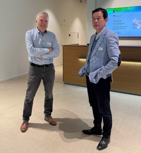 Einer, der es geschafft hat, von der Festanstellung – statt in die Frühpension zu gehen – direkt in die Selbständigkeit zu starten, ist der 60-jährige Satoshi Sugimoto mit seiner gleichnamigen GmbH (Foto rechts). Der Kommunikationsprofi schilderte seinen gradlinigen Gründungsweg und wie er mit Gaudenz von Capeller vom Business Parc tatkräftig Unterstützung bei der Entwicklung und Umsetzung seines Geschäftsmodells erhielt.
